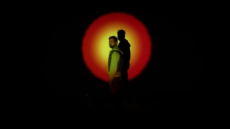 A encenação parte de um eixo central: a espera no aeroporto. As memórias atravessam a narrativa. Não é fragmentação, é deslocamento dentro de uma linha contínua. No aeroporto, esse lugar onde tudo é vigiado, o personagem conta sua história enquanto a revive. Existir não é suficiente: é preciso provar, repetir e justificar.
