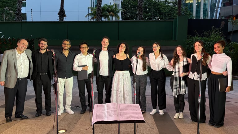 O AKLAVE Vocal Ensemble, conjunto de câmara formado por jovens cantores, apresenta um concerto especial que celebra o encontro entre literatura e música. Ao lado da atriz Sylvia Lohn e do Quarteto ALMAI, o grupo conduz o público por uma jornada artística inspirada em alguns dos maiores nomes da literatura mundial.