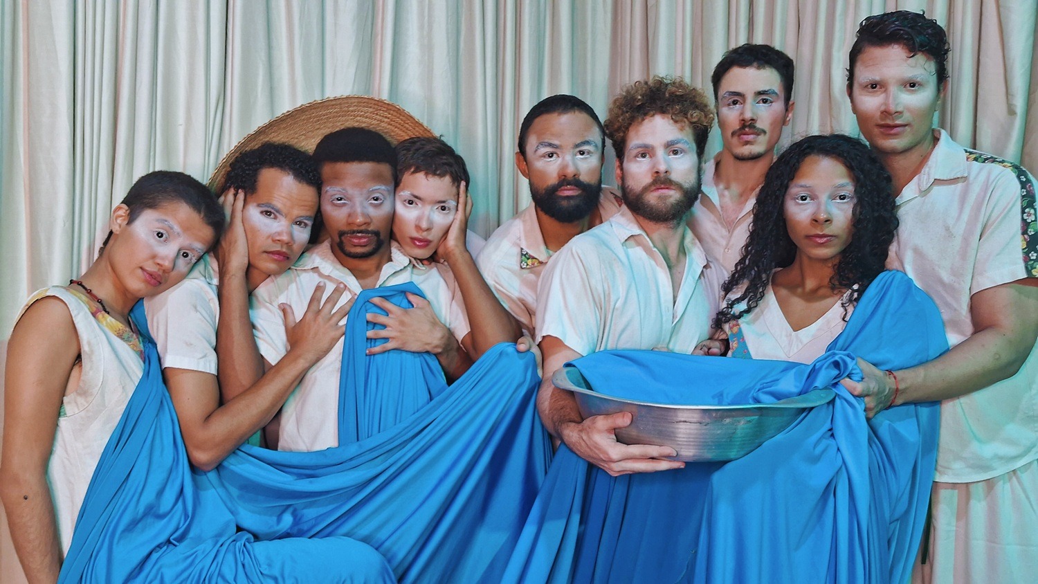 Na montagem, os atores permanecem em cena como em um ritual contínuo, transitando entre personagens, imagens e situações. Entre altares, cantos e jogos cênicos, o espetáculo convida o público a uma experiência sensorial e coletiva, onde o teatro se torna espaço de encontro, memória e partilha.
